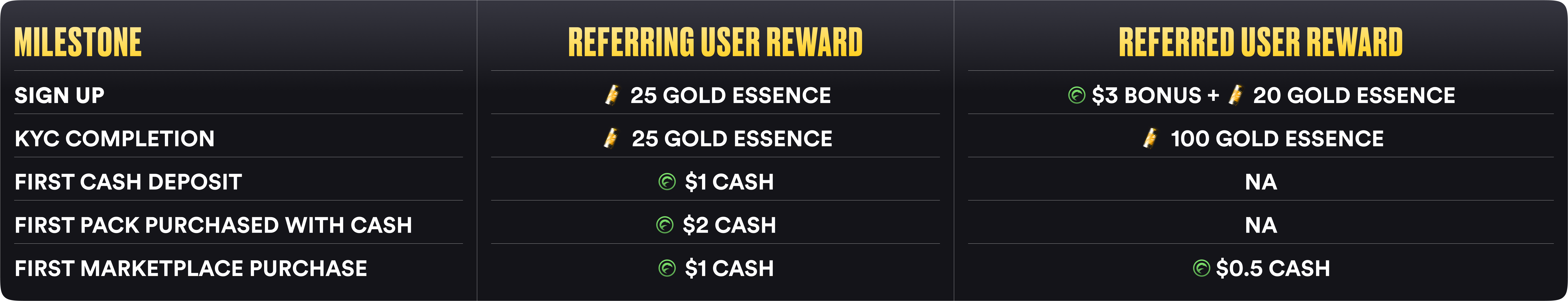 Below is a comprehensive breakdown of the milestones and the corresponding rewards for both you (the Referring User) and your friend (the Referred User).